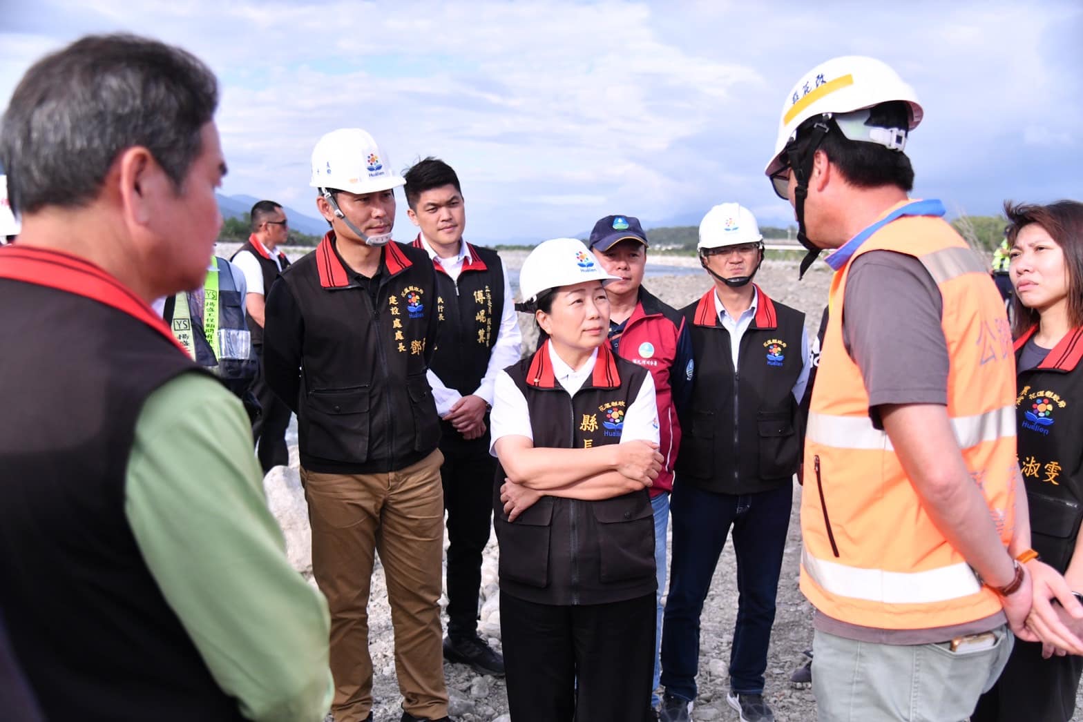 花蓮縣長徐榛蔚關心花蓮南區農民與鄉親交通與生計,今(1)日在建設處長鄧子榆、農業處長陳淑雯的陪同下前往崙天大橋、明里大橋、蚊子洞橋重建及便道施作進度進行視察,因受到颱風影響致無法通行造成南區鄉親通行不便,日前適逢農作物採收期,縣長徐榛蔚要求相關單位務必在確保安全無虞的情況下,盡速搶通便道,讓農友能在採收期間安全方便通行使用,也讓鄉親回歸正常生活。