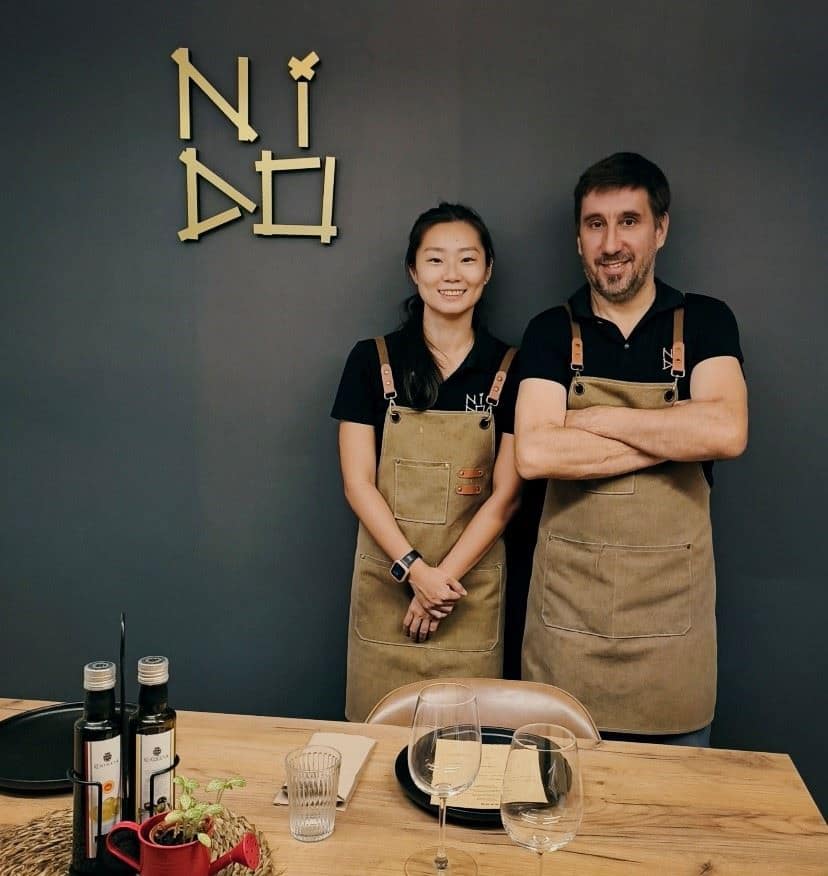 「Nido Spanish Cuisine」主廚Jon出生在有許多米其林餐廳的西班牙臨海小鎮巴斯克,這裡也是著名甜點巴斯克乳酪蛋糕的發源地。Jon從小跟著奶奶進出廚房,傳承了許多西班牙私房菜做法,後來他到台灣學中文時認識太太Sonia,兩人有共同的料理興趣,再三考慮後Jon決定放棄建築師一職,回到巴斯克廚藝學校進修,也在西班牙開設餐酒館,2021年為了孩子搬回Sonia的家鄉高雄開設餐廳,推廣最道地的西班牙料理。