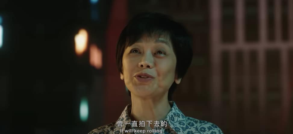 公車司機是「消失的情人節」,擋路搶上計程車的金毛是「陽光普照」的冠廷,上車之後唱卡拉ok的是「孤味」。女生交通警察是「運轉手之戀」,計程車司機是「一路順風」,計程車往前開天橋上是「不能沒有你」,路邊遇到「愛情萬歲」、「怪胎」、「梁祝」,計程車上的金毛冠廷變成「詭扯」的冠廷,另一台計程車是「白日青春」,接著是「無間道」,詭扯的冠廷目睹無間道,跑上車的是「色戒」,接下來斧頭幫的是「功夫」,再來「臥虎藏龍」,問這電影在演什麼的是蔡明亮,緊接「賽德克巴萊」、「刺客聶隱娘」,母女講廣東話是「窄路微塵」,再來是「投名狀」,前面有一對騎車拿風車是「父子」,騎摩托車來的是「男朋友女朋友」,還有「牯嶺街」的小四,旁邊光頭是「緝魂」的張震,張艾嘉是「燈火闌珊」、接著「下半場」、「幻愛」、「濁水飄流」、「該死的阿修羅」等