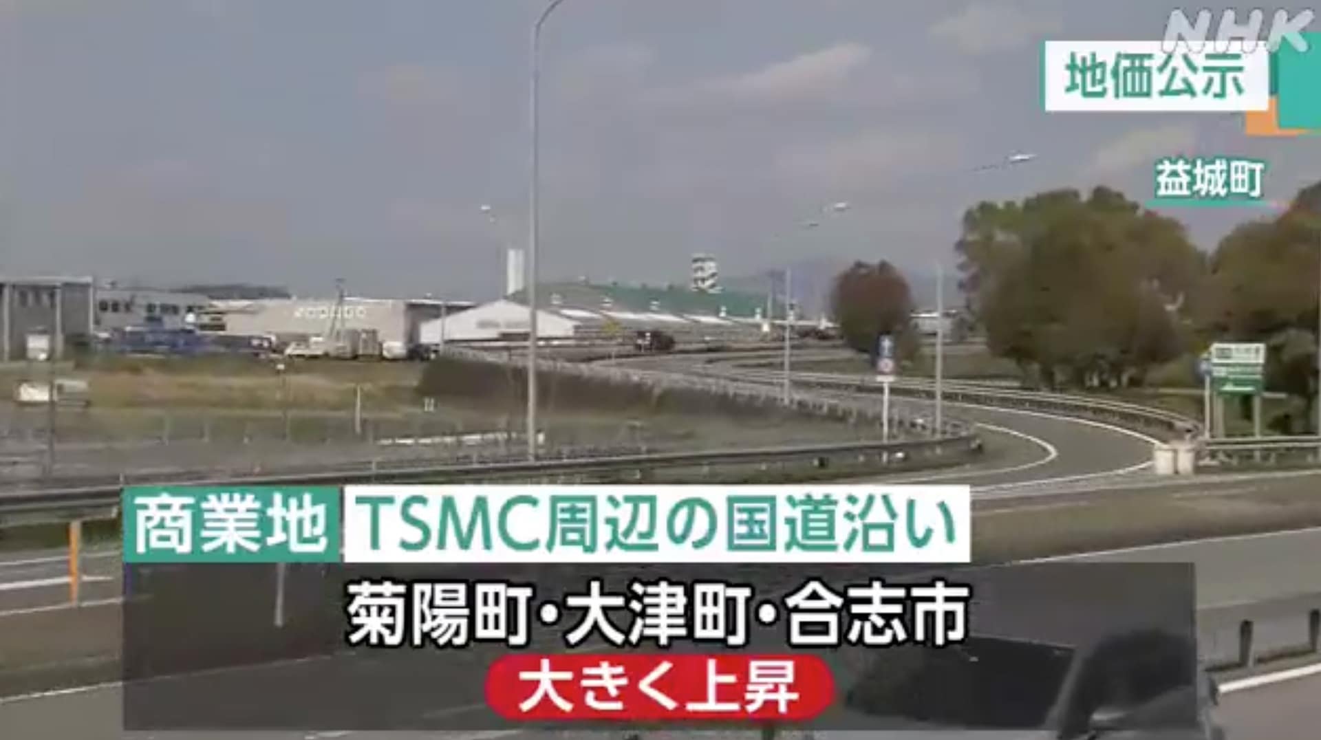 至於工業用地,平均值成長6.0%,較上年提高2.2個百分點。增幅最高的地區是九州高速公路益木熊本機場交會處附近的益木町高岩,為10.7%。這也是由於台積電的擴張導致企業間對土地的爭奪加劇,尤其是交通便利的地區。