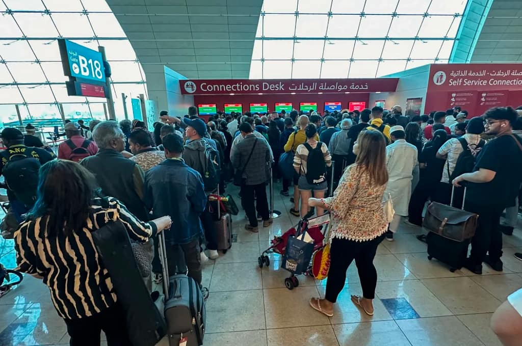 此次降雨在杜拜國際機場也造成不便,停機坪淹水雨量氾濫,飛機如同海上的船,導致機場宣布停飛,由於杜拜內陸交通易受影響,因此被滯留在機場的旅客也只能留在機場內等待。