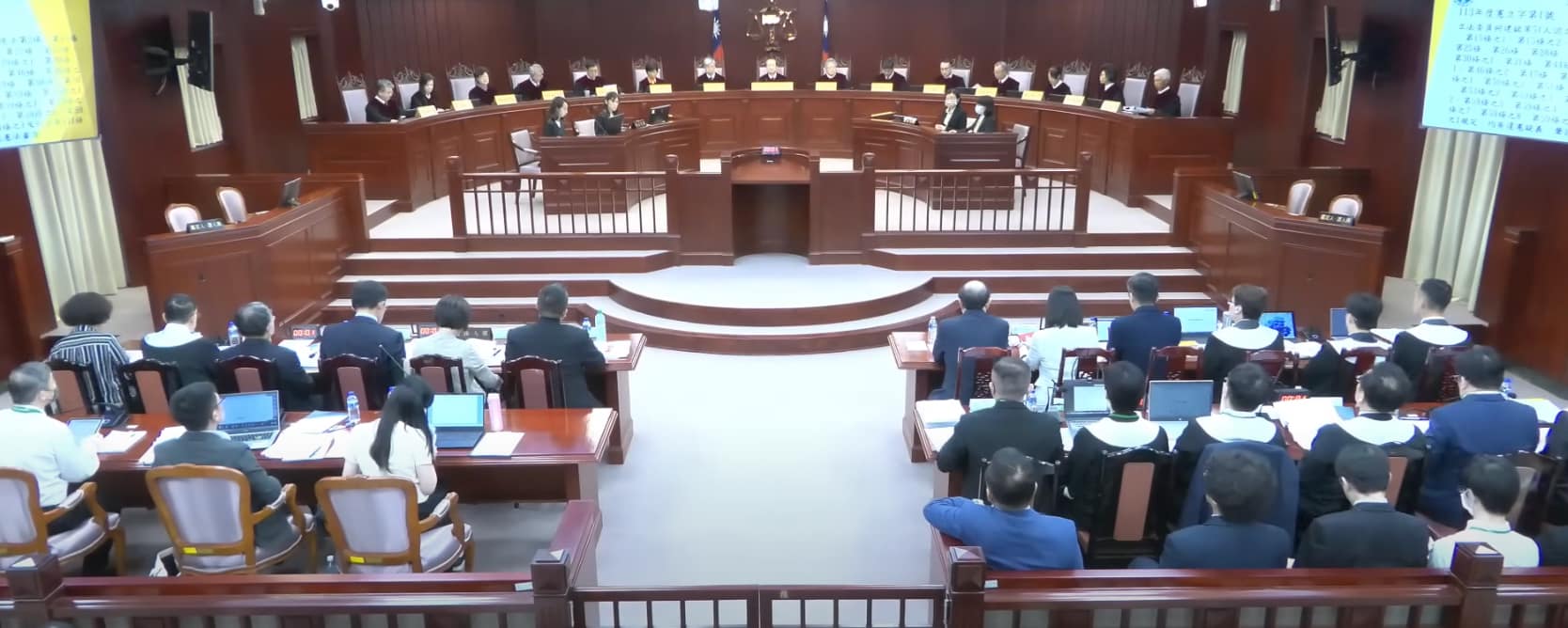 總統府、行政院、監察院及民進黨立法院黨團對國會職權修法提出釋憲及暫時處分申請。憲法法庭今裁定,「藐視國會罪」、「立院聽取總統國情報告」、「聽取立法院長及部長報告與質詢」、「人事同意權行使」、「調查權行使」、「聽證會」等6項新制存在違憲疑慮,為避免憲政衝突,相關條文暫停實施6個月。相關法律是否違憲將於8月6日開庭審理。