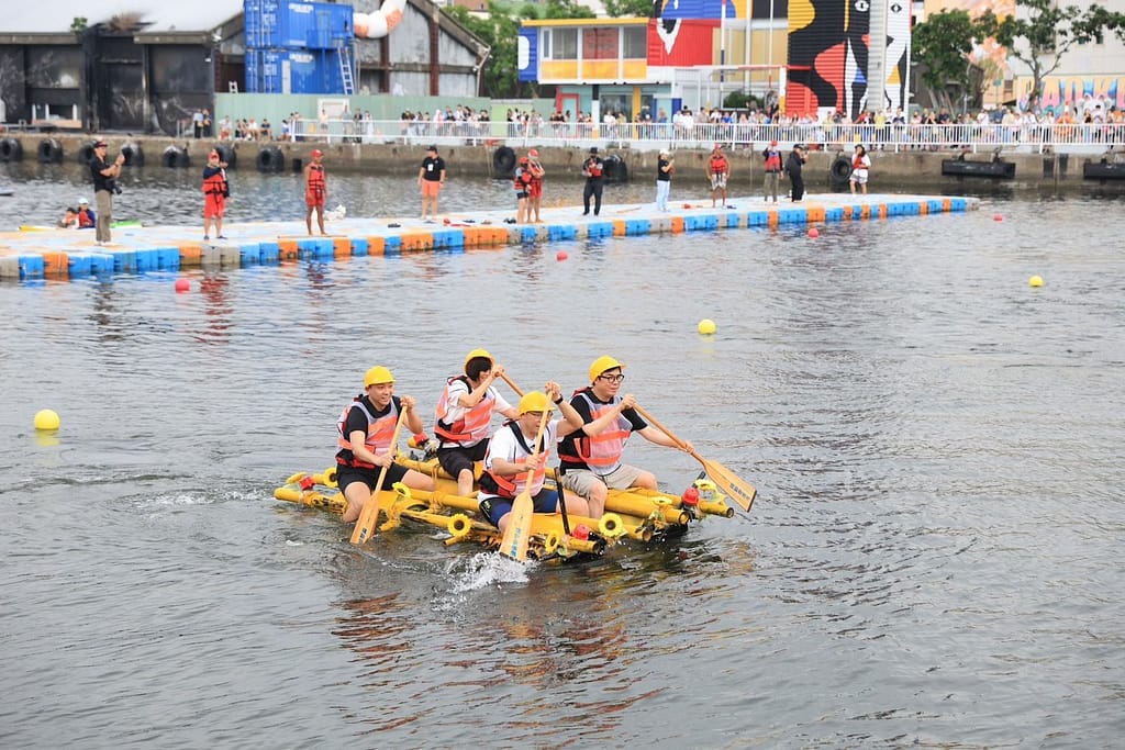 此次大港造筏競賽中,參與者創意無限,包含車友團「臺灣獼猴隊」帶來了創意十足的海上吸塵器、火箭筒、瘋狂飛馬等特色船筏,並在賽前幽默向市長陳其邁喊話「麥擱輸啊」,計程車團隊以計程車配色發想,結合臺灣熱情設計船隻,還有左營高中師生搭上運動賽事熱潮,打造了海上漂移羽球場,各行各業的參賽者各出奇招,為賽事增添了不少亮點。