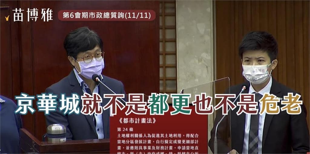 前台北市長柯文哲在北市長任內,放行京華城改建容積獎勵840%,遭到檢方搜索調查。柯文哲無保請回後,隨即在臉書表態「今年3、4月才知」,不過,網友發現早在2021年11月11日,台北市議員苗博雅早在總質詢中提及此事,當時針對就有討論京華城容積840%,並進行討論。
