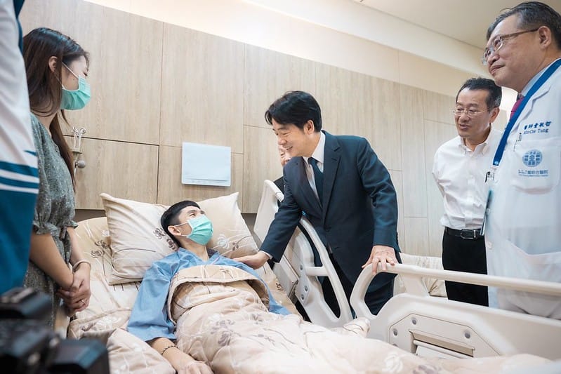 接著,總統也至病房探視日前因執行海巡勤務受傷的海巡署隊長陳慶昌,關心其身體復原情況,並祝福陳隊長早日康復。
