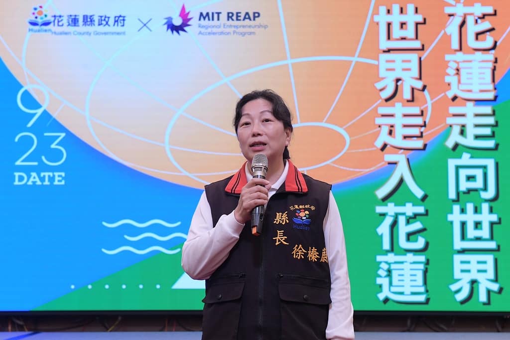 花蓮縣長徐榛蔚以「預見未來的花蓮」為題致詞,她表示,永續是花蓮的日常,而幸福花蓮更是縣府團隊努力推動的城市願景,很榮幸花蓮能夠成功入選MIT REAP,面對全球快速變遷與人才競爭,花蓮需要更多的創新人才,必須打造更友善的國際創業環境,才能發展超越GDP的福祉經濟,保護花蓮的好山好水。