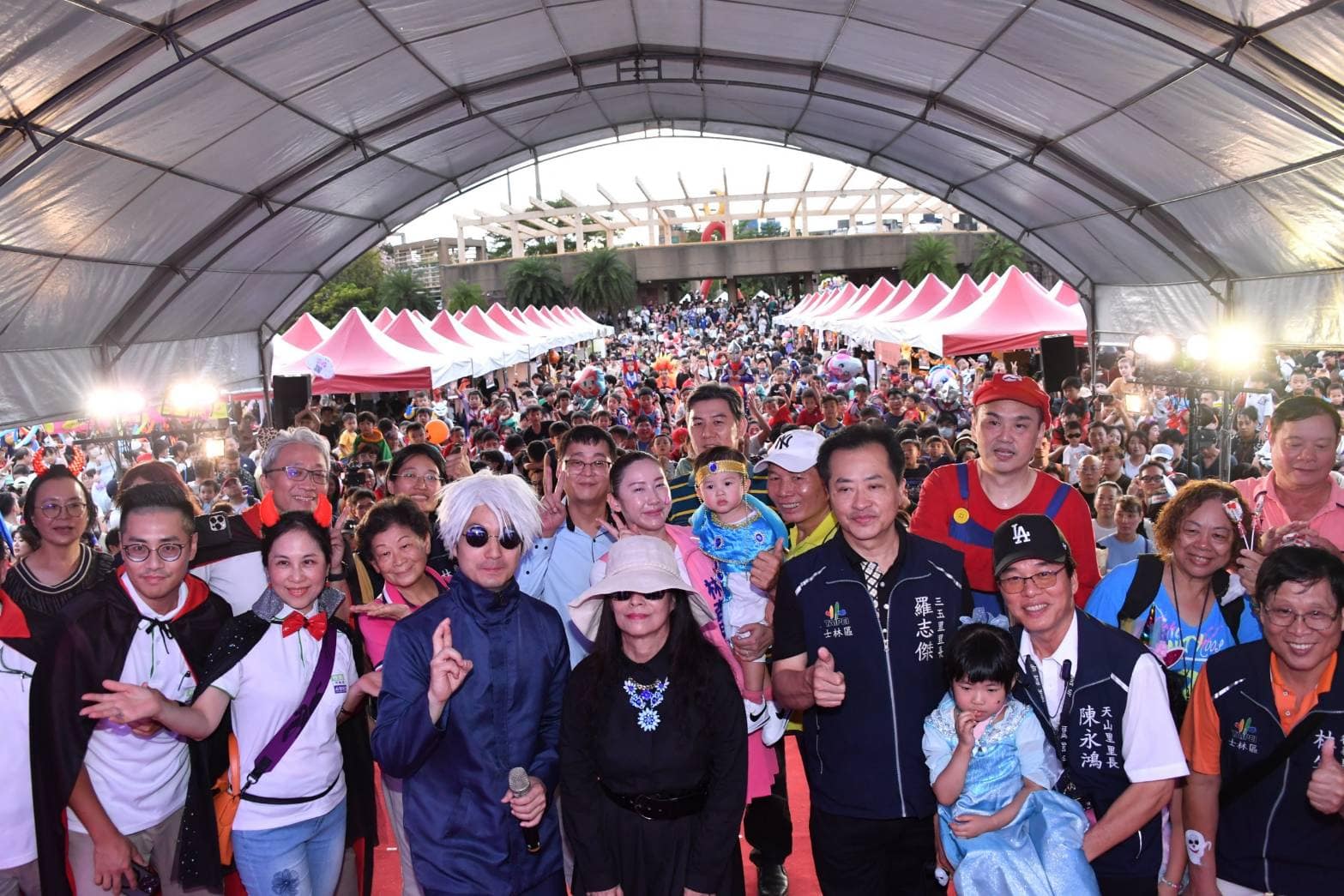 臺北市長蔣萬安今(26)日扮裝成《咒術迴戰》角色「五條悟」出席「天母搞什麼鬼萬聖節嘉年華活動」,與眾多市民共同慶祝這個盛大的活動。活動今(113)年已邁入第16屆,蔣萬安也特別感謝天母商圈的共同努力,成功打造出這個具有指標性的活動品牌。