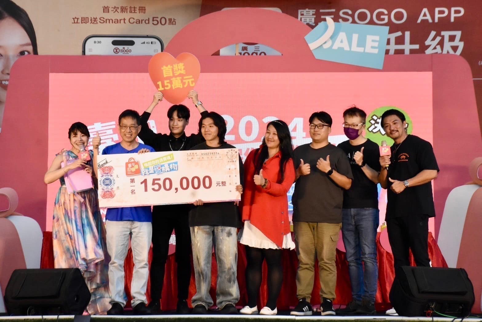 就是愛購物徵件競賽決賽17日在廣三SOGO一樓廣場登場,活動最終由來自台灣師範大學學生所演唱的「台中購物天堂」獲得首獎,帶走15萬元獎金,另由舞台劇演員「卡門愛血拚」及音樂者悠悠「2024台中購物節主題曲」分別獲得第二、三名次。經發局表示,參賽者以自己最拿手的方式,將購物節與才藝迸出新創意,表達對台中購物、在地文化的熱情;同場更抽出購物節百萬汽車得主新社區陳小姐,以及多項優惠店家加碼獎,讓觀眾不只看秀,還能見證中獎的喜悅。