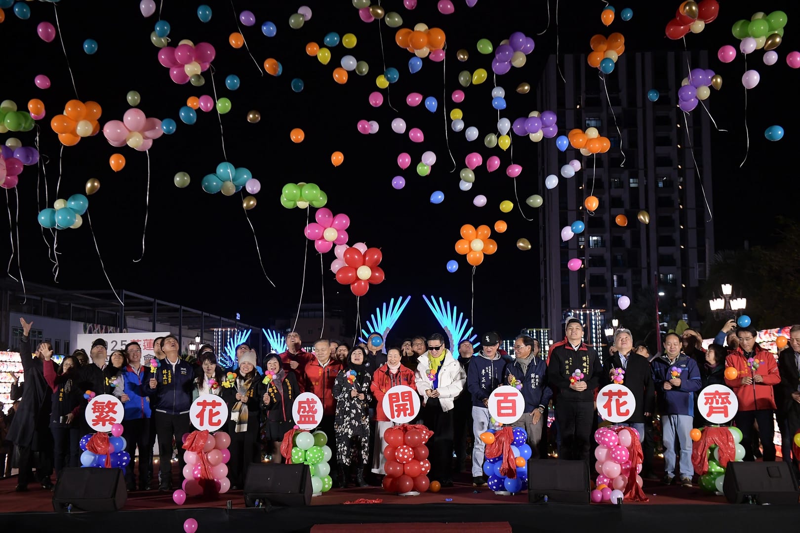 「2025花蓮太平洋燈會」今(17)日晚間正式開幕,縣長徐榛蔚及與會來賓攜手點亮「花好月圓」科技主燈,以及佈滿日出大道上的一百朵「百花齊放」裝置藝術燈飾。本次燈會以「百花齊放」為主題,象徵花蓮歷經地震洗禮後綻放的生命力,更為2025「繁花盛開」的花蓮揭開序幕!