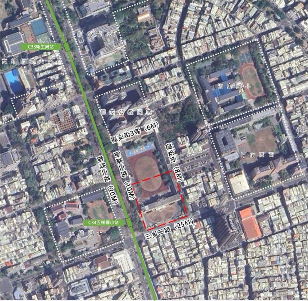 此外,市府也積極推動TOD活化舊校地,規劃C34站原屬高雄市私立國際高級商工職業學校南側校地為捷運開發區,將變更面積約1.49公頃。都發局表示,高雄環狀輕軌C34站緊鄰凱旋醫院、民生醫院、三信家商、三多及福德路周邊零售店鋪商街,區位條件佳、具發展潛力,且車站周邊高教、醫療資源及相關產業進駐與就業人口帶來之都市生活機能需求,且因私立國際商工校地於民國111年停辦後已無使用需求,且北側校地欲維持既有文教區機能,規劃頂尖教學,並結合周邊既有文教風氣發展,打造高師大文教生活圈,並期許創造苓雅舊市區再發展契機。