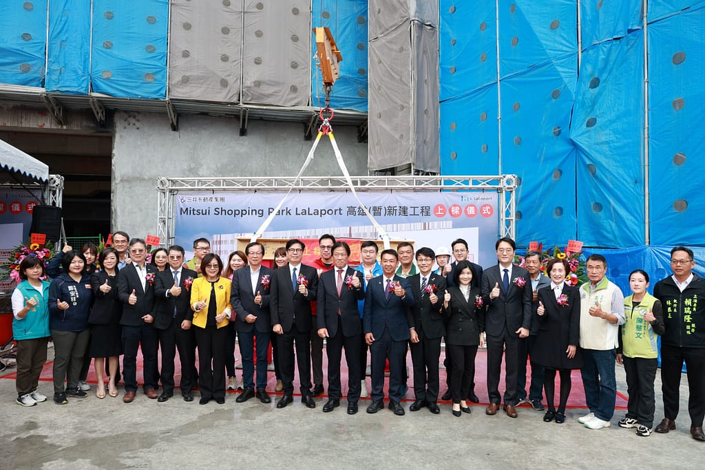 擁有超過百年歷史的日商三井不動產集團,今(19)日舉辦Mitsui Shopping Park LaLaport高雄新建工程上樑儀式,該集團斥資百億在鳳山衛武營東側打造結合購物、餐飲、娛樂一站式體驗的休閒購物中心。今儀式現場包含高雄市長陳其邁、台灣三井不動產集團董事長久一康洋、台糖公司董事長吳明昌、立法委員許智傑、高雄市議長康裕成率多名在地議員,以及業界重要貴賓到場參與上樑儀式,祈福工程順利圓滿。