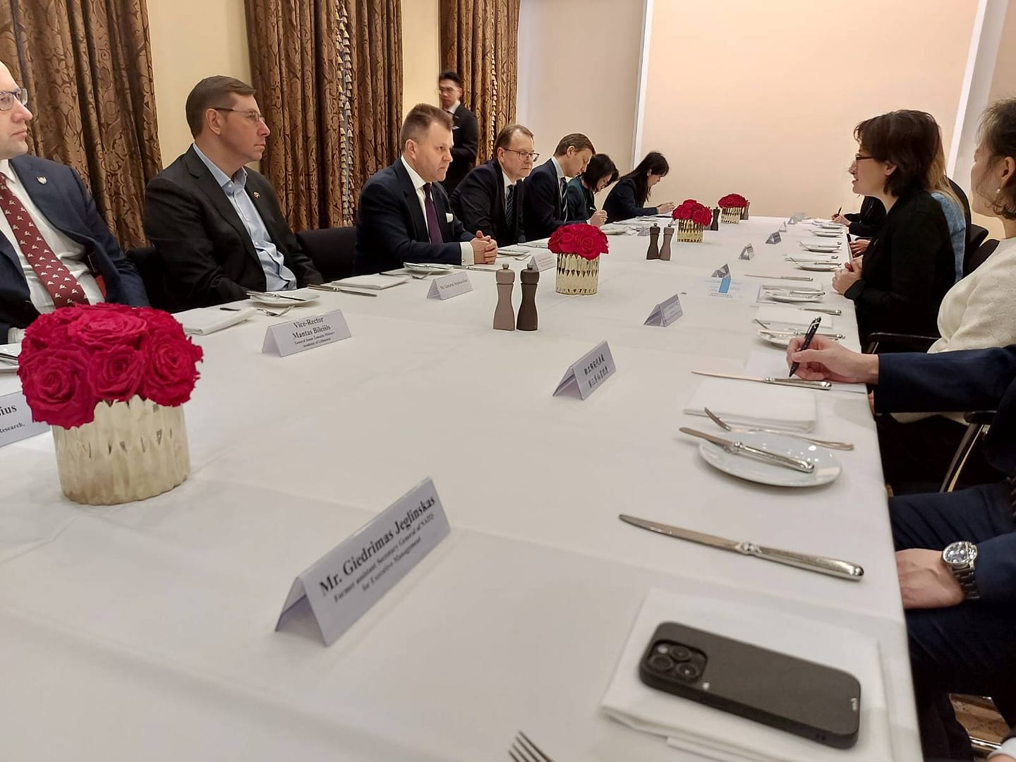 蕭美琴在立陶宛期間,安排了工作早餐會議,會晤了多位立陶宛政壇的挺台人士,勞里納維丘斯透露立陶宛朝野2位總統候選人都參與了蕭美琴的工作早餐會,包括執政聯盟自由黨的查理瑪斯(Dainius Žalimas),及反對黨「以立陶宛之名」民主聯盟的耶格林斯卡斯(Giedrimas Jeglinskas)。