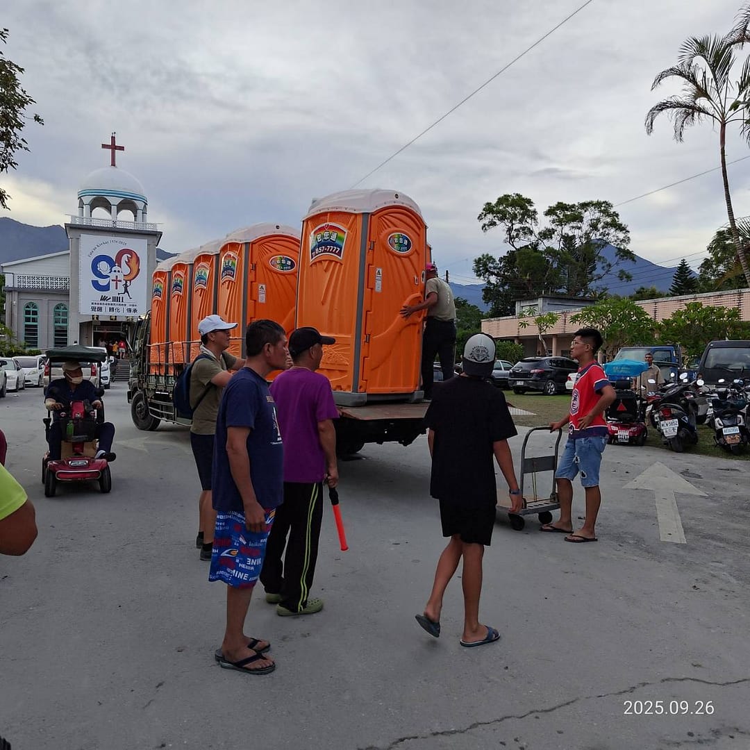 為解決災民臨時如廁需求,並防止環境污染及病媒孳生,花蓮縣環境保護局今(26)日緊急協調,於暫時提供災民安置的台灣基督長老教會旁設置4座、光復高職設置2座、光復國小設置2座流動廁所,即時提供乾淨、衛生的如廁環境。