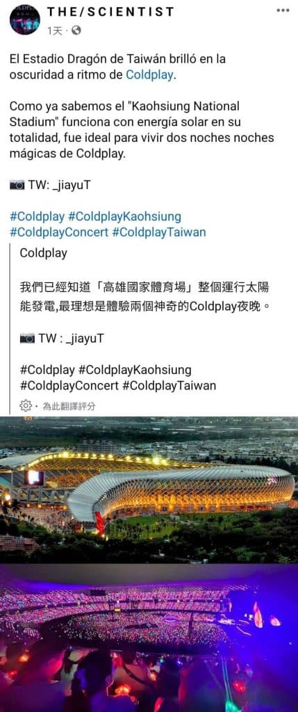 Coldplay粉絲創辦、擁有100萬追蹤者的Facebook粉絲專頁「THESCIENTIST」也曾多次貼文。(圖 / 高雄市政府提供)