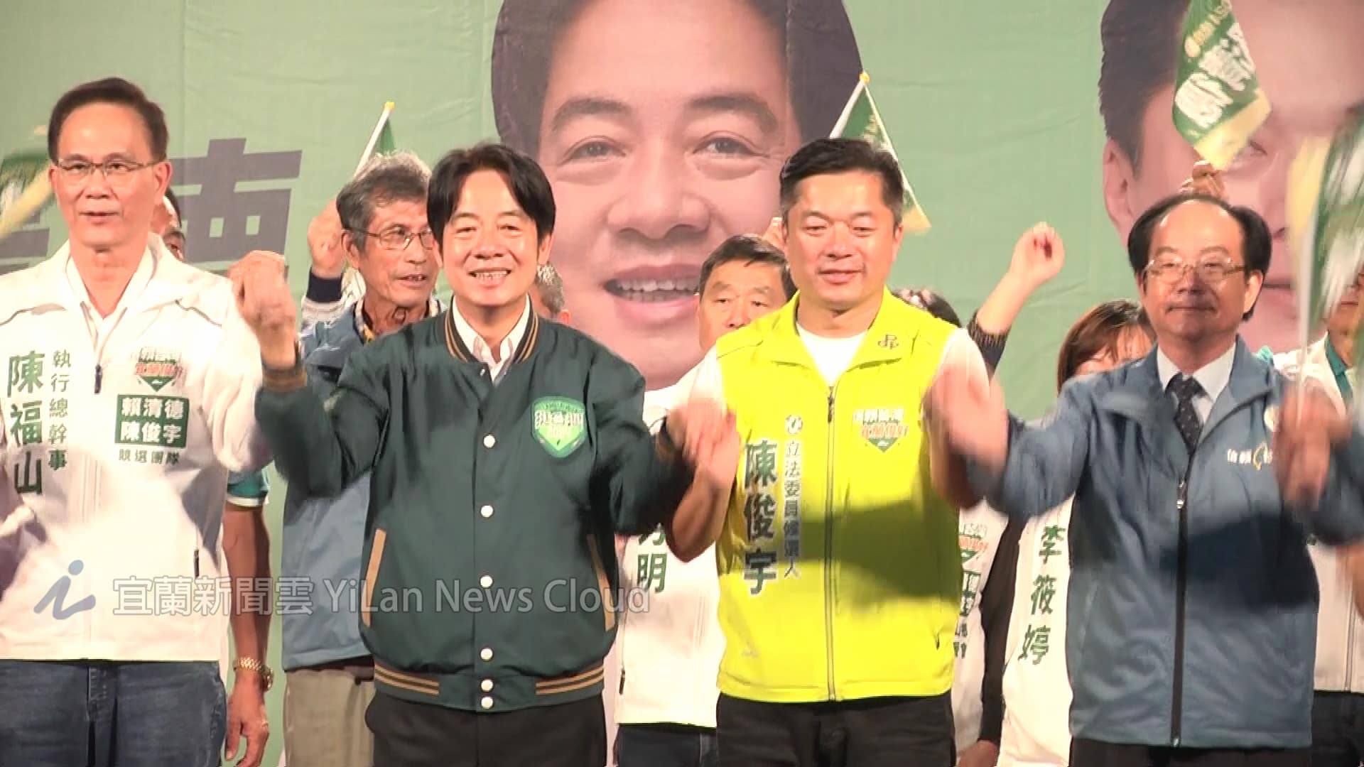 民進黨總統立委參選人賴清德陳俊宇,員山後援會暨信賴之友會員山、三星、五結分會,昨天同步成立,眾多支持者到場力挺,副總統賴清德親臨現場,與陳俊宇同框高喊「挺清德、拚過半」,一起守護台灣。