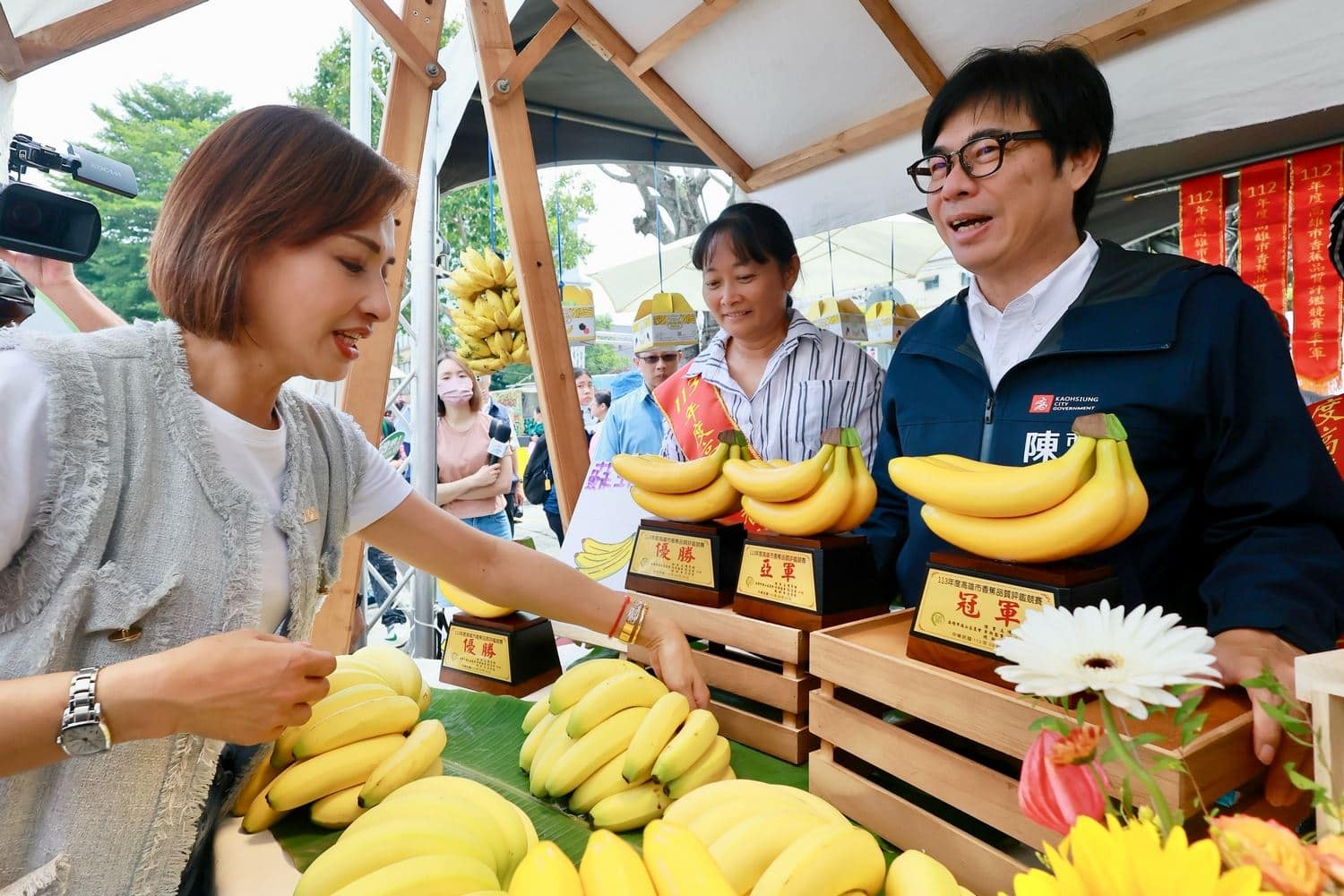 夏祭新鮮市壓軸活動「2024旗山香蕉文化節」今(28)日於旗山體育場登場,高雄市長陳其邁出席活動,並親自頒發香蕉品質評鑑得獎人暨輔導單位香蕉達人,隨後與旗山區農會理事長陳峯翔及在地立委一起啟動開幕儀式。