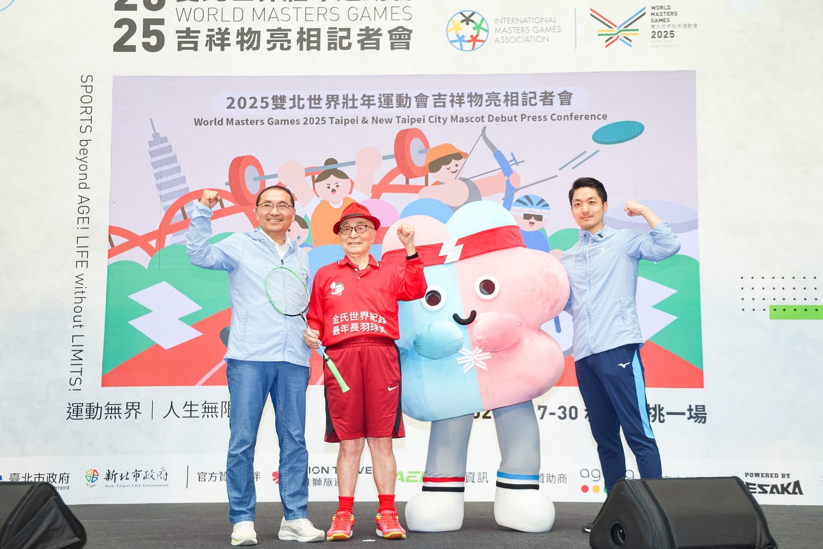 侯友宜指出,雙北世壯運是由兩市攜手合作,所以吉祥物以「北」為設計發想,藍色代表信任、冷靜及團結,粉紅色則是表現熱情及活力,傳遞「運動無界、人生無限」的賽會理念。侯友宜強調,2025雙北世界壯年運動會是一場友誼的、開心的,與世界交朋友的大型運動會,更落實聯合國SDGs永續發展目標,除了在9種運動種類設置帕拉項目,同時首創女子棒球項目,真正實踐運動平權。