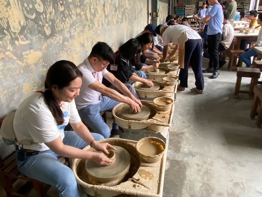 今日活動以尋寶解謎遊戲拉開春日戀情序幕,大家在鶯歌陶瓷園區內分組進行實境解謎遊戲,彼此間透過緊密合作,進而瞭解彼此個性及面對生活的態度。而下午則有手拉坯的體驗,感受美好的陶作時光。希望大家帶回家的不只是一份作品,也是一份浪漫情誼、難忘的回憶。