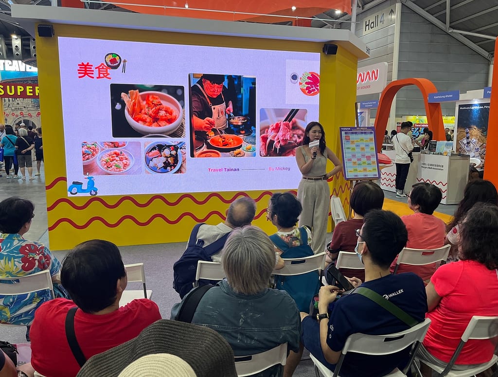為增加展區互動與參與感,現場亦規劃社群按讚留言、趣味問答抽獎等活動,民眾只要參與互動即可抽取臺南特色小禮物,吸引眾多參觀者駐足參與。市府同時與新加坡在地旅行社合作,推出包含臺南行程的旅遊產品,透過實際銷售通路,鼓勵更多新加坡旅客深入探索臺南。旅展期間更特別邀請新加坡知名主持人兼演員黃鈺文(Mickey Huang)到場分享其臺南旅遊體驗,介紹臺南古蹟、美食及人情味,引發現場民眾高度共鳴,成功帶動展區人氣。